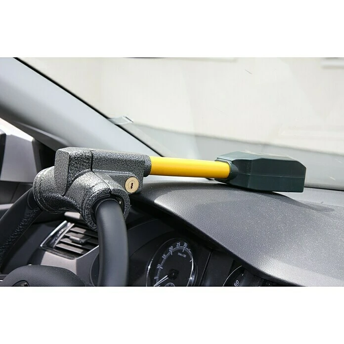 Die Basi Lenkradsperre KFZ 102 wird am oberen Lenkrad befestigt und verhindert so das unerwünschte Wegfahren. Die Diebstahlsicherung ist mit einem Alarmsystem ausgestattet, das bei einem Versuch des Aufbrechens einen 120db Alarmton auslöst. In Kombination mit dem Strobolicht erregt die Lenkradsperre große Aufmerksamkeit. Die Diebstahlsicherung passt perfekt in kleine PKWs, aber auch in SUVs, Vans, Wohnwagen, Transporter oder LKWs. Lieferung inklusive Fernbedienung und 2 Schlüssel.