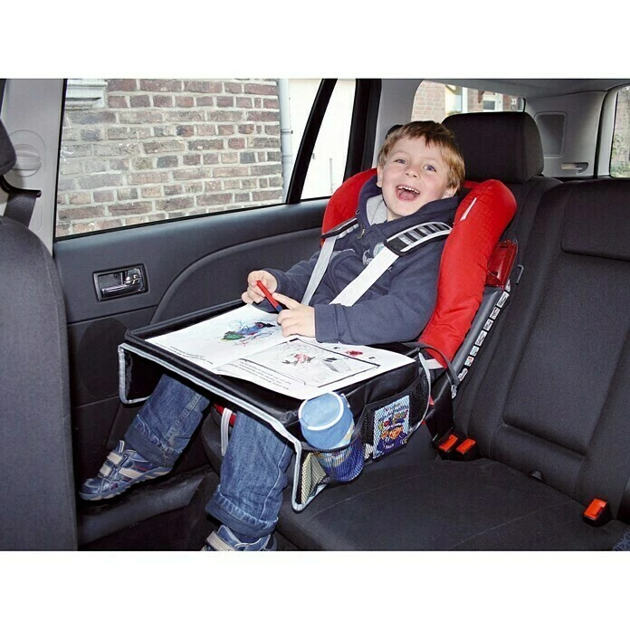 Der Spieltisch von Happy Kids ist perfekter Begleiter jedes Kindes unterwegs. Er bietet eine stabile Unterlage und kann somit beispielsweise zum Zeichnen, Spielen oder Essen verwendet werden. Es ist sowohl zum Gebrauch mit als auch ohne Kindersitz geeignet. Der Tisch ist aus einem Polyester-Gewebe gefertigt, das leicht abzuwaschen ist, sodass Verschmutzungen aller Art schnell und einfach und ohne größeren Arbeitsaufwand beseitigt werden können. Darüber hinaus ist der Tisch mit praktischen Seitentaschen ausgestattet, in denen beispielsweise Wasserflaschen oder Spielzeug verstaut werden und immer griffbereit liegen können.