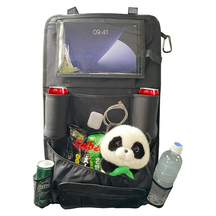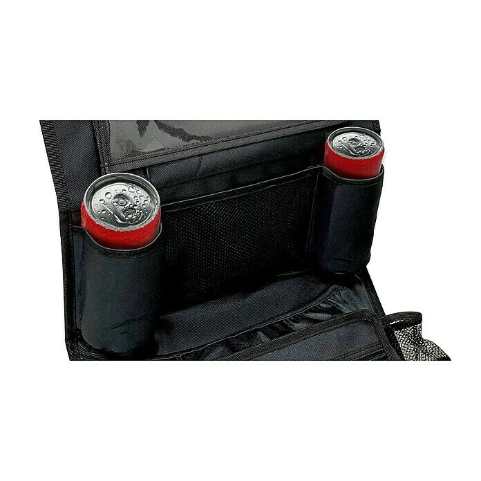 Der Rücksitztasche verfügt über 2 wärmeisolierte Neopren-Getränke-Halter und viele Taschen und Aufbewahrungsmöglichkeiten. Die ausklappbare Halterung für Tablets bis zu 12“ sorgt für angenehme, lange Autofahrten. So können Ihre Mitfahrer entspannt einen Film anschauen. In der abnehmbaren Reißverschlusstasche finden Stifte und kleines Zubehör Platz. Verstellbare Gurte sorgen für optimalen Halt an den Vordersitzen jedes Fahrzeugtyps. Der hochwertige und strapazierfähige Rücksitzschoner schützt vor Trittspuren und lässt sich leicht reinigen.