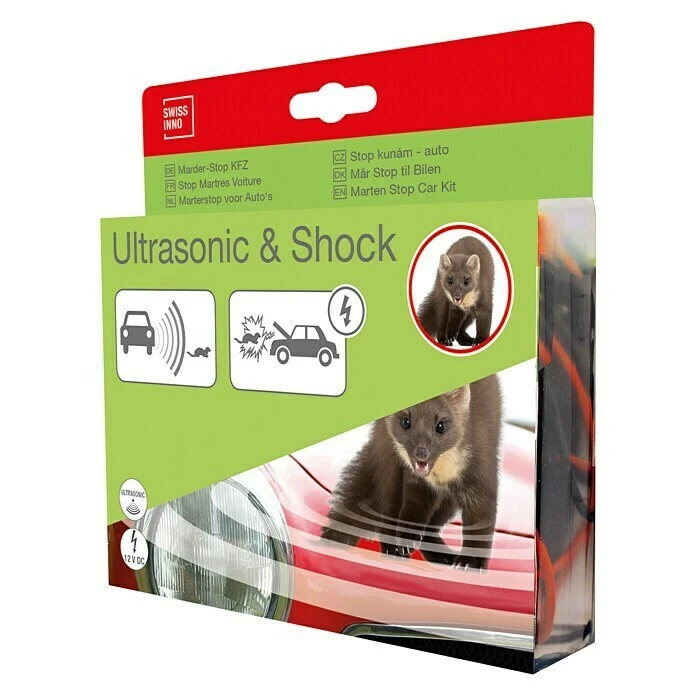 Der Swissinno Marderstop KFZ vertreibt Marder sicher und effektiv aus dem Motorraum. Starke Ultraschall-Schwingungen sowie aufgeladene Hochspannungsplättchen wirken dauerhaft gegen Marderbefall. Der Swissinno Marderstop ist leicht zu montieren, spritzwasserdicht und funktioniert mit der KFZ-Batterie. Wird die Batteriespannung zu niedrig, verfügt der Marderstop über eine praktische Abschaltautomatik.