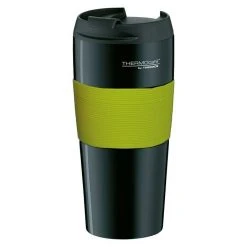 Der Isolierbecher ThermoPro von Thermos hat ein Fassungsvermögen von 0,4 Litern und hält die Temperatur des Inhalts stundenlang konstant. Der doppelwandige Edelstahlbehälter ist extrem robust, schlag- und bruchsicher. Mit einem Gewicht von 0,3 Kilogramm ist er leicht und für den mobilen Einsatz geeignet. Die Innenseite ist unbeschichtet und somit komplett geschmacksneutral. Der Becher ist frei von BPA und anderen Weichmachern. Die Silicone-Grip-Zone sorgt für einen sicheren Halt und sicheren Umgang mit dem Becher. Der ThermoPro ist geeignet für alle gängigen Fahrzeuggetränkehalter und eignet sich somit besonders zur Verwendung unterwegs. Der Flip-Lid-Verschluss (Klappverschluss) der Trinköffnung lässt sich problemlos einhändig zu betätigen.