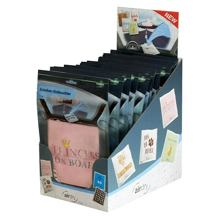 Der Scheiben-Entfeuchter airdry Fun von ThoMar überzeugt, da die Kissen leicht anzuwenden sind und und 200 % des eigenen Gewichts aufsaugen können. Die Feuchtigkeit wird gebündelt und durch das integrierte Granulat in Gel umgewandelt. Das Fahrzeuginnere wird somit von der Feuchtigkeit befreit. Schlechte Gerüche, Schimmel und vor allem beschlagene Scheiben werden verhindert. Nachdem sich das Granulat im Beutel gesättigt hat, kann es im Hausmüll entsorgt werden.