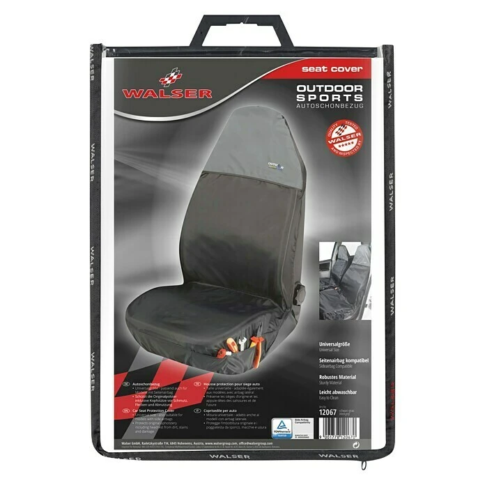 Der Autositzbezug Outdoor Sports für den Vordersitz ist ideal für die Fahrzeuge von Naturfreunden und begeisterten Hobby-Mechaniken. Schmutz an Händen und Kleidung sind bei Ausflügen ins Grüne und nach langen Arbeitstagen in der Werkstatt keine Seltenheit, wodurch die Sitze des Autos besser vor Verunreinigungen geschützt sind. Mit dem Sitzbezug Outdoor Sports sind alle diese Sorgen verschwunden. Der Autositzbezug ist aus wasserdichtem Material gefertigt und leicht abwaschbar. Durch die integrierte Kopfstütze ist das Produkt für viele der gängigen Automodelle geeignet. Zusätzlich ist der Sitzbezug Clix I zertifiziert und somit für Autositze mit integriertem Seitenairbag geeignet. An der Seite sind zusätzliche Aufbewahrungstaschen für Werkzeug oder ähnliches angebracht. Der Sitzbezug Outdoor Sports wird einfach über den Sitz gezogen und unter dem Sitz mit Haken befestigt. Dadurch ist er schnell zu montieren und auch wieder zu entfernen, sollte der Bezug einmal nicht mehr gebraucht werden. Bei der Montage sind folgende Hinweise zu berücksichtigen: Die Kopfstützen müssen abnehmbar sein. Außerdem darf es sich nicht um ausgeprägte Sportsitze wie z. B. Recaro Sitze handeln. Zusätzlich dürfen die Vordersitze zwischen Rückenlehne und Sitzfläche nicht geschlossen sein.