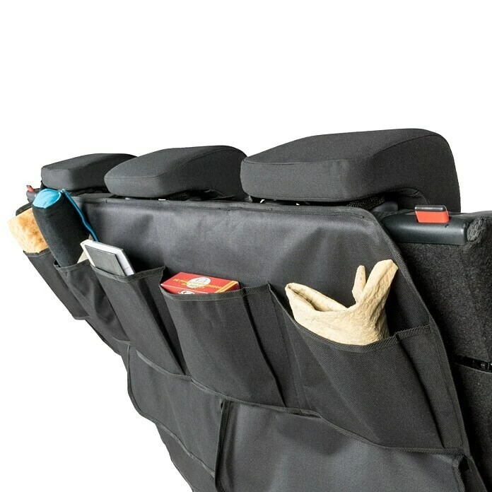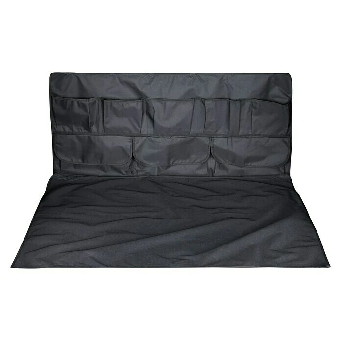 Die Walser Kofferraumdecke mit Multiorganizer ist das perfekte Produkt, um Verschmutzungen vom Kofferraum fernzuhalten und gleichzeitig für Ordnung zu sorgen. Die Kofferraumdecke ist funktional und ebenso widerstandsfähig. Das robuste Polyestermaterial mit wasserabweisender Beschichtung bietet Schutz vor Wasser und Schmutz. 8 praktische Taschen in unterschiedlicher Größe befinden sich an der Rückseite der Kofferraumdecke und bieten viel Stauraum für alles was Sie im Auto an Ausstattung brauchen. Die Taschen sind teils offen, teils mit Klettband verschließbar. Das Produkt kann durch einen Klettverschluss in zwei Teile geteilt werden. Die Kofferraumdecke wird einfach in den Kofferraum gelegt und schützt diesen. Der Multiorganizer wird durch Bänder mit Schnappverschlüssen an den Kopfstützen befestigt und hält bombenfest. Beide teile können einzeln oder gemeinsam verwendet werden.